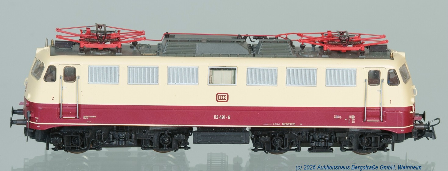 | 2013 | Tax: 48,- | 1 Roco Elektrolokomotive 43428, Baureihe: 191, Deutsche Bundesbahn, Epoche IV, Betriebsnummer: 191.002-5, Achsfolge: 'C''C', Länge: ca. 19 cm, Gehäuse: chromoxidgrün, Dach: silbergrau, sehr guter Zustand, Originalkarton! | |