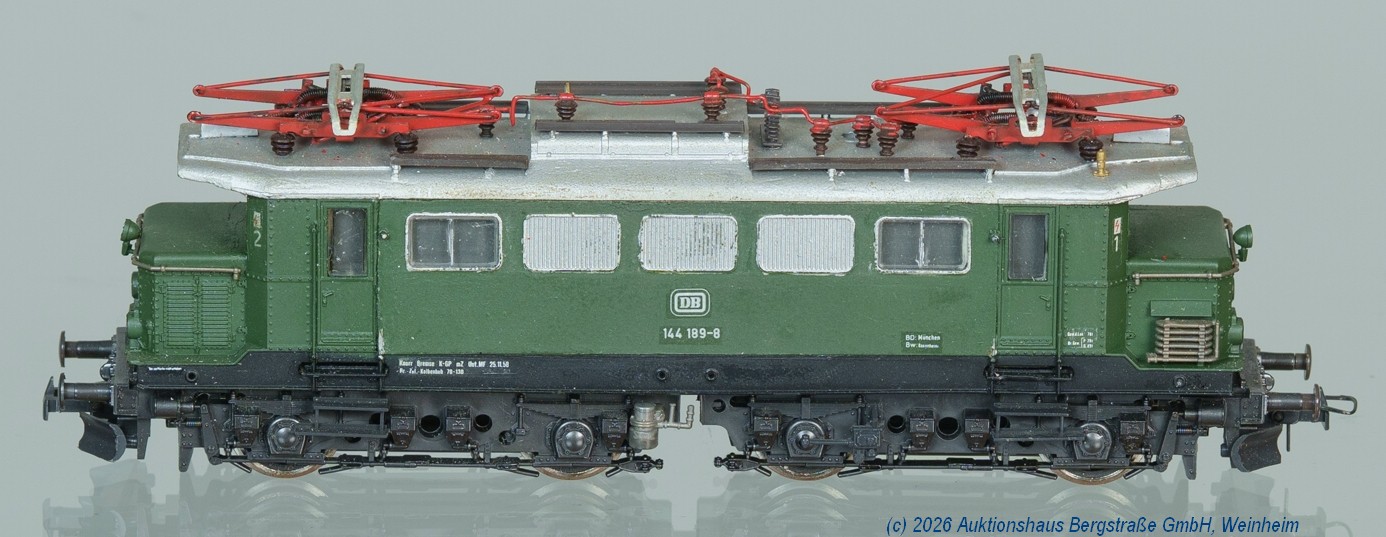 | 2016 | Tax: 60,- | 1 Liliput-Bachmann Elektrolokomotive L132543, Baureihe: 44.5, Deutsche Bundesbahn, Epoche IV, Betriebsnummer: 144.505-5, Achsfolge: 'Bo''Bo', dunkelgrün, neuwertig, Originalkarton! | |