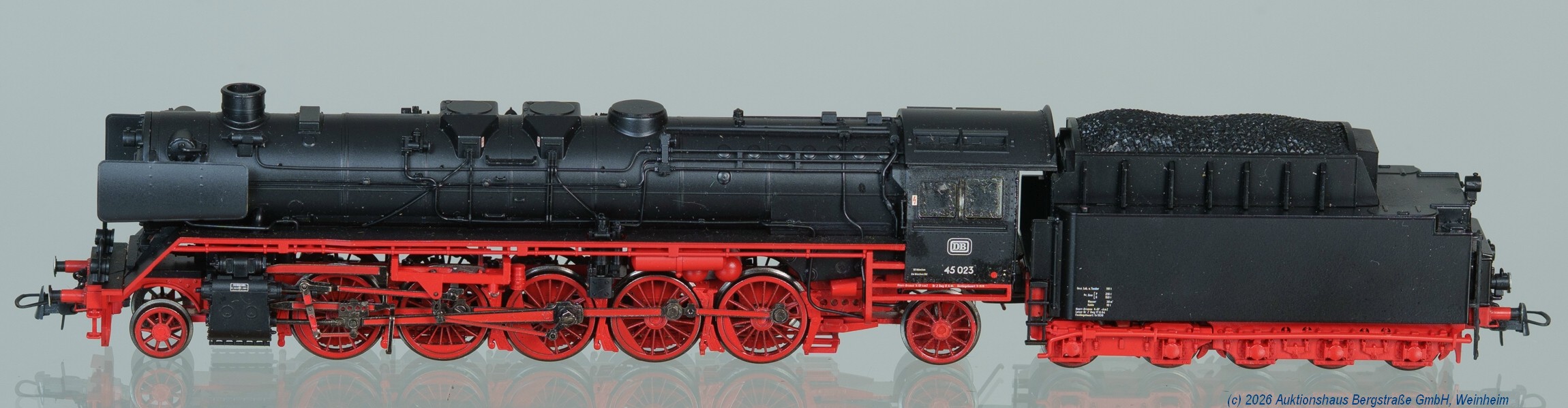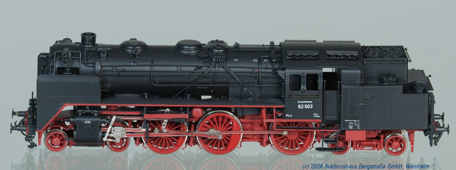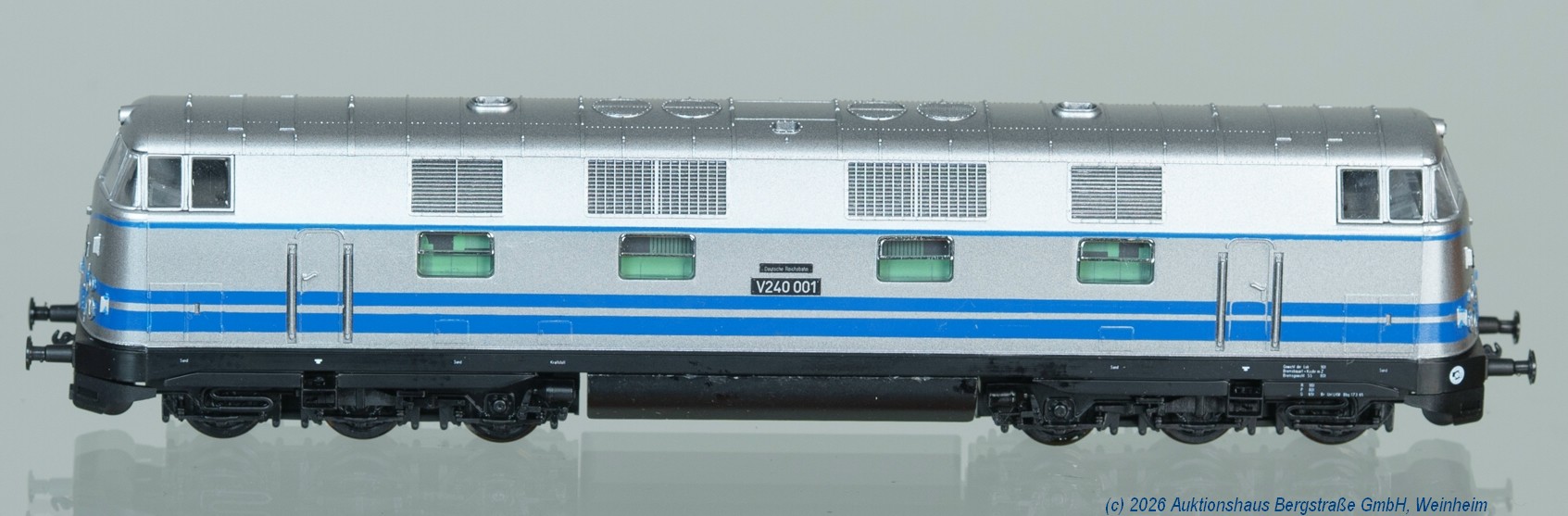 | 2015 | Tax: 58,- | 1 Piko Elektrolokomotive 51053-2, Baureihe: 242, Deutsche Reichsbahn, Epoche IV, Betriebsnummer: 242.019-8, Achsfolge: 'Bo''Bo', dunkelgrün, Drehgestelle: rot, Dach: hellgrau, sehr guter Zustand, Originalkarton! | |
