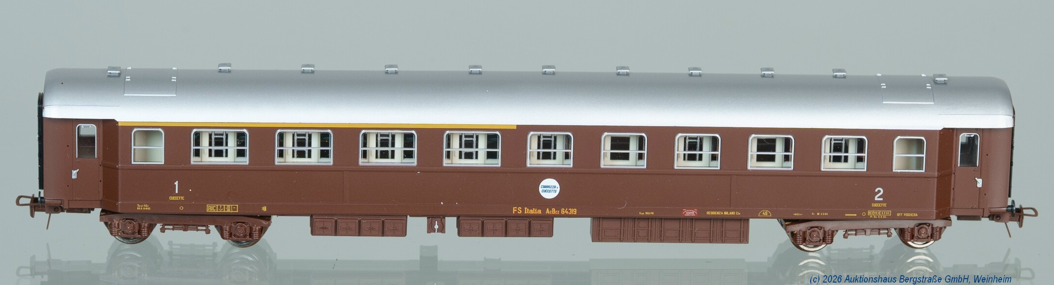 | 2964 | Tax: 18,- | 1 Lima Schnellzugwagen 309506, 4-achs., Ferrovie dello Stato, Epoche IV-V, 2.Klasse, Wagennummer: 61.83.21-90.604-1, Typ: Z, dunkelgrau mit hellgrauem Fensterband, 1:87, neuwertig, Originalkarton! | |