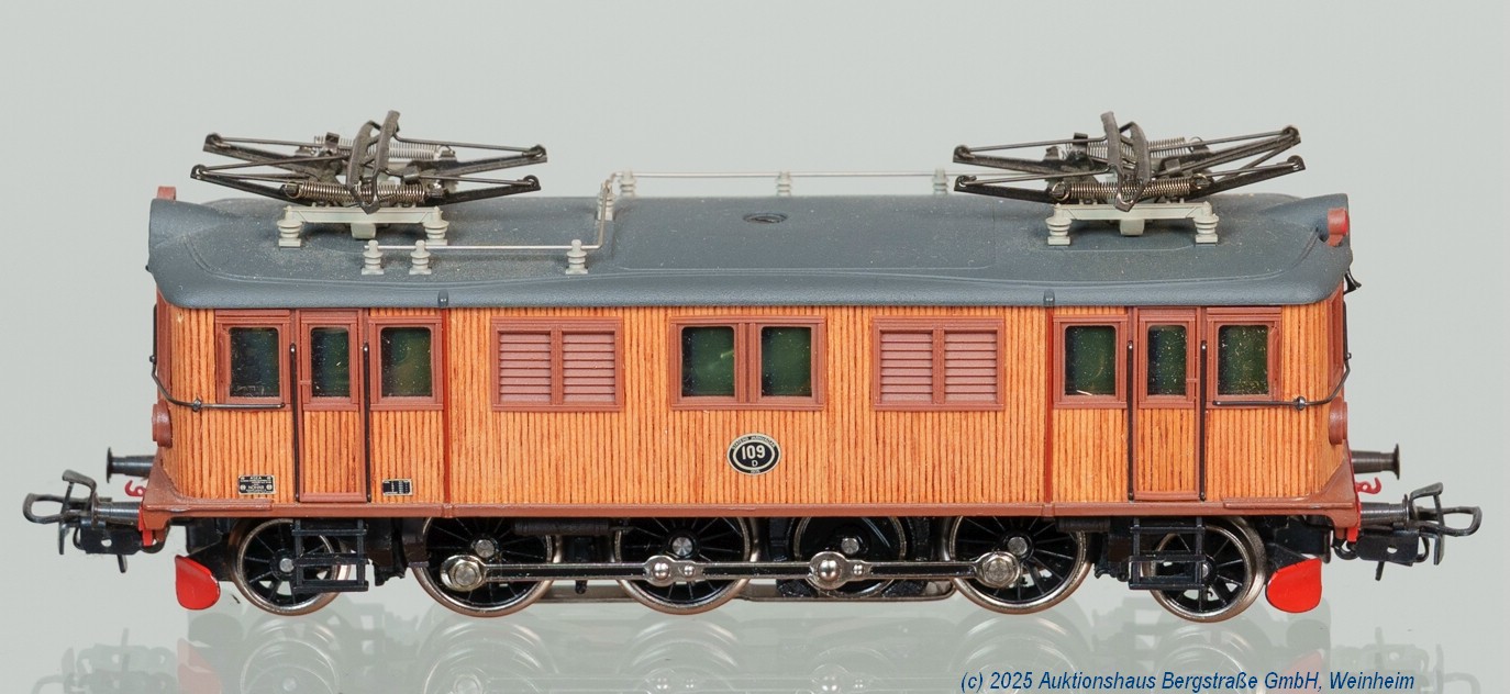 1472 | Tax: 90,- | 1 Märklin Digital Elektrolokomotive 3670, Statens Järnvägar, Betriebsnummer: 109, Achsfolge: 1'C'1, Länge: ca. 15,4 cm, Gehäuse: in Holzausführung, Dach: dunkelgrau, sehr guter Zustand, Originalkarton! | |