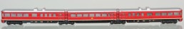 1047 | Tax: 150,- | 1 Märklin Ergänzungswagenpackung zum Dieseltriebzug VT 11.5 43115, Deutsche Bundesbahn, Epoche III, 1 Abteilwagen, 1 Großraumwagen und 1 Barwagen, Gehäuse: creme/rot, Dächer: mittelgrau, sehr guter Zustand, Originalkarton! | |