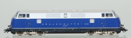 1465 | Tax: 86,- | 1 Märklin mfx Diesellokomotive 39302, Bauart: ML 2200 C'C', Privatmaschine 'Krauss Maffei A.-G., Epoche III, Achsfolge: 'Co''Co', Länge: ca. 23,2 cm, Gehäuse: blau/silber, mit Geräusch, sehr guter Zustand, Originalkarton! | |