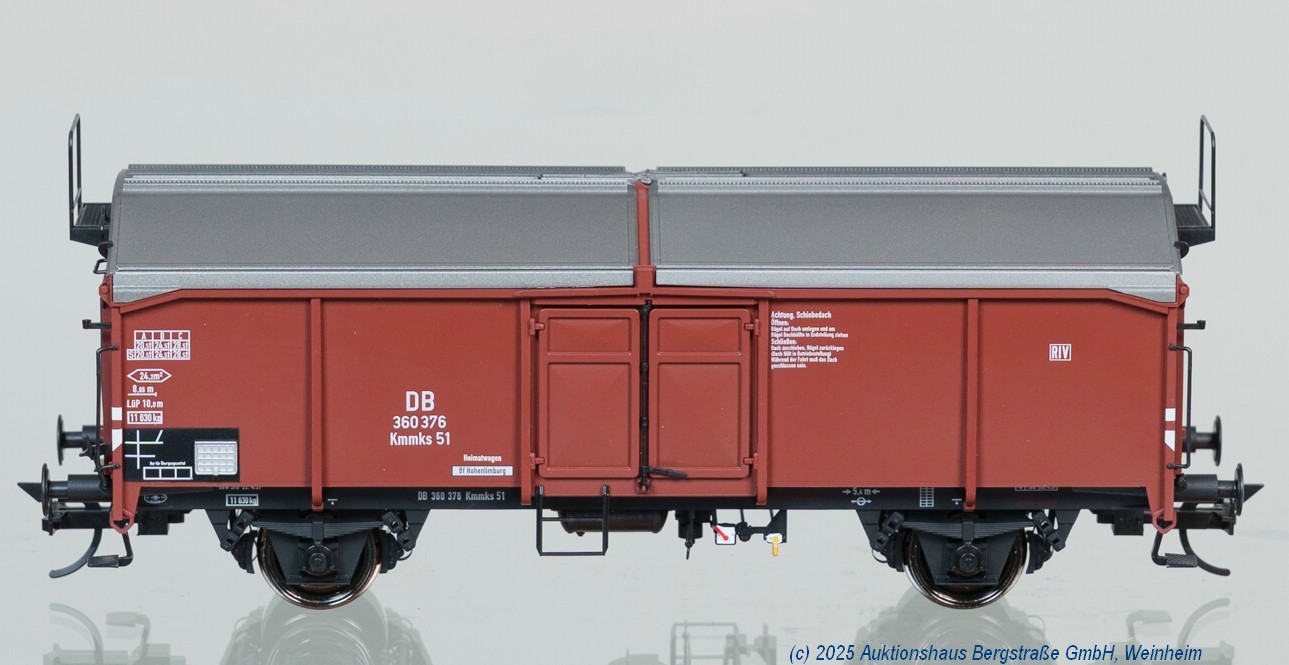 | 3022 | Tax: 56,- | 1 Brawa Schiebedachwagen 37020, 2-achs., Deutsche Bundesbahn, Epoche III, Wagennummer: 360.376, Bauart: Kmmks51, braun, automatische Kupplungen, neuwertig, Originalkarton! | |